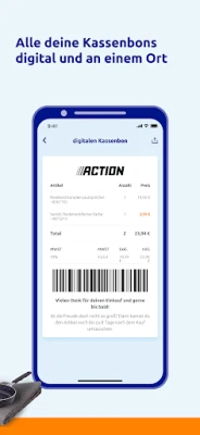Erweitere dein Einkaufserlebnis mit intelligenten Funktionen, die dir das Leben leichter machen. Mit dem integrierten Produktscanner der Action App verwandelst du dein Gerät im Handumdrehen in einen persönlichen Informationshelfer. Scanne Artikel in der Filiale oder zu Hause und erhalte sofort detaillierte Produktinformationen. Zudem gehören unübersichtliche Papierbelege der Vergangenheit an: Alle deine Kassenbons von Action werden digital und übersichtlich in der Action App gespeichert, sobald du beim Bezahlen deine digitale Kundenkarte scannst. Genieße Transparenz und Ordnung – alles an einem Ort, stets verfügbar.