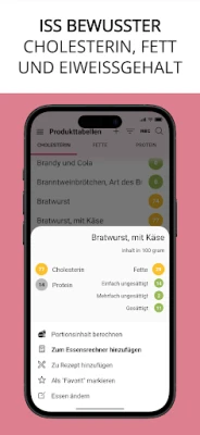 Die Bedeutung der Ernährung für ein gesundes Herz kann nicht genug betont werden. Heartie unterstützt Sie dabei mit einem intelligenten Lebensmittelrechner, der Cholesterin, Fett und Eiweiß analysiert, sowie einer umfangreichen Lebensmittelliste mit spezifischen Cholesterinwerten. Entdecken Sie Anleitungen für eine cholesterinarme Ernährung und erhalten Sie praktische Tipps zur Senkung des Cholesterinspiegels und zur allgemeinen Förderung Ihrer Herzgesundheit. Heartie ist die ideale Unterstützung für alle, die Herz-Kreislauf-Erkrankungen vorbeugen, ihre Ernährung bewusster gestalten oder einfach ihre gesamte Herzgesundheit in einer zentralen, benutzerfreundlichen Anwendung im Blick behalten möchten.
