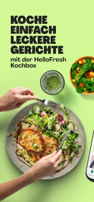 Verwandeln Sie Ihre Küche in eine Oase der Kreativität und des Genusses mit HelloFresh! Schluss mit dem täglichen Dilemma, was gekocht werden soll, und der lästigen Suche nach Rezepten und Zutaten. HelloFresh liefert Ihnen sorgfältig ausgewählte, grammgenaue Zutaten direkt nach Hause, begleitet von inspirierenden Rezeptkarten. Erleben Sie jede Woche eine Welt voller Geschmack mit über 30 neuen, abwechslungsreichen Gerichten, die perfekt auf Ihre Vorlieben abgestimmt sind – von traditioneller Hausmannskost bis hin zu exotischen Entdeckungen, immer frisch und von zertifizierter Qualität.