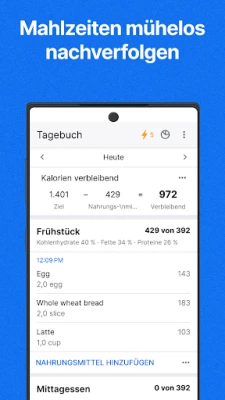 Im Herzen von MyFitnessPal liegt ein intuitives System zur Erfassung Ihrer Nahrungsaufnahme. Mit einer beeindruckenden Datenbank von über 20 Millionen Lebensmitteln und Rezepten können Sie jede Mahlzeit mühelos protokollieren. Verfolgen Sie nicht nur Kalorien und Makronährstoffe wie Kohlenhydrate, Fette und Proteine in präzisen Gramm- oder Prozentangaben, sondern auch wichtige Nährwerte wie Ballaststoffe, Natrium oder Cholesterin. Ob durch schnelles Suchen, Barcode-Scannen oder das Wiederholen gespeicherter Favoriten – die detaillierte Analyse Ihres Ernährungstagebuchs hilft Ihnen, ein tiefes Verständnis für die Zusammensetzung Ihrer Mahlzeiten zu entwickeln und Ihre Ziele konsequent zu verfolgen.
