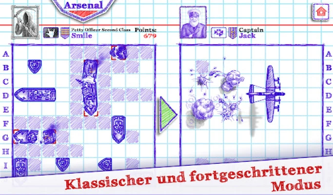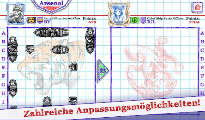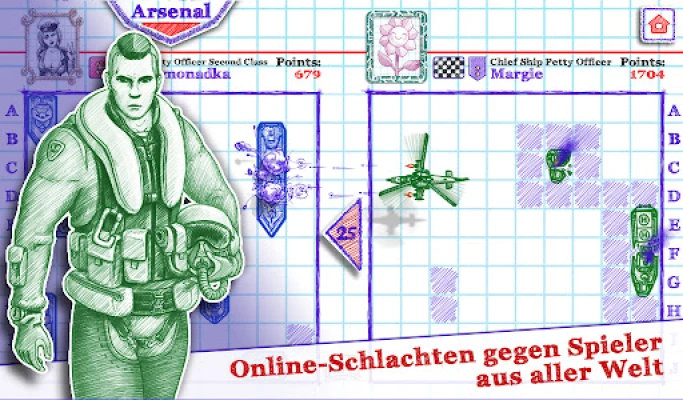 Gestalten Sie Ihre Kriegsflotte bis ins kleinste Detail: Wählen Sie aus einer Fülle von Skins, die von historischen Schiffen des Ersten Weltkriegs bis zu futuristischen Entwürfen reichen. Verleihen Sie Ihrem Kommandanten einen respekteinflößenden Namen, wählen Sie einen einzigartigen Avatar und die Flagge, die Ihre Legende repräsentiert. Interagieren Sie während hitziger Gefechte per Chat und Emojis mit anderen Spielern. Treten Sie in packenden Turnieren an, füllen Sie Ihr Trophäenzimmer mit prestigeträchtigen Auszeichnungen und erklimmen Sie die weltweiten Bestenlisten, um sich als Top-Spieler zu beweisen. Die einzigartige "Notizblock"-Grafik und originelle Effekte von "Schiffe versenken 2" schaffen dabei eine unverwechselbare Atmosphäre, die jede Begegnung unvergesslich macht. Entdecken Sie zudem erweiterte oder klassische Spielmodi, um das Erlebnis an Ihre Vorlieben anzupassen.