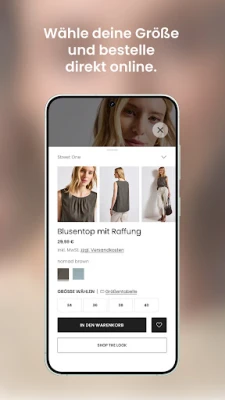 Wir möchten, dass Ihr Einkauf so angenehm und sorgenfrei wie möglich ist. Deshalb profitieren Sie nicht nur von einer intuitiven Navigation durch alle Kategorien und Marken, sondern auch von unseren kundenfreundlichen Serviceleistungen. Nutzen Sie den kostenlosen Rückversand, sollten Artikel einmal nicht Ihren Vorstellungen entsprechen, und genießen Sie die Flexibilität des Kaufs auf Rechnung. Mit dieser App, die Ihnen die gesamte Markenwelt von Street One, Street One Studio und Street One MEN eröffnet, halten Sie den Schlüssel zu Ihrem individuellen Style in Händen – komfortabel, vorteilhaft und vertrauenswürdig.